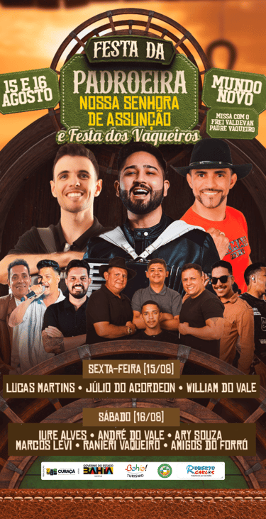 Nos dias 15 e 16 de agosto, o distrito de Mundo Novo será palco de uma das celebrações mais tradicionais da região: a Festa da Padroeira Nossa Senhora de Assunção, que acontece juntamente com a Festa dos Vaqueiros. O evento reúne fé, cultura e tradição, com programação religiosa, desfile de vaqueiros e apresentações culturais que fortalecem os laços da comunidade com suas raízes sertanejas.