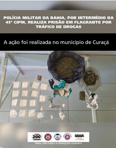 POLÍCIA MILITAR DA BAHIA, POR INTERMÉDIO DA 45ª CIPM, REALIZA PRISÃO EM FLAGRANTE POR TRÁFICO DE DROGAS NO MUNICÍPIO DE CURAÇÁ
