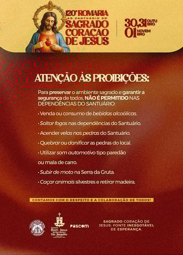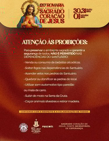 Não é permitido vender ou consumir bebidas alcoólicas nas dependências do Santuário;